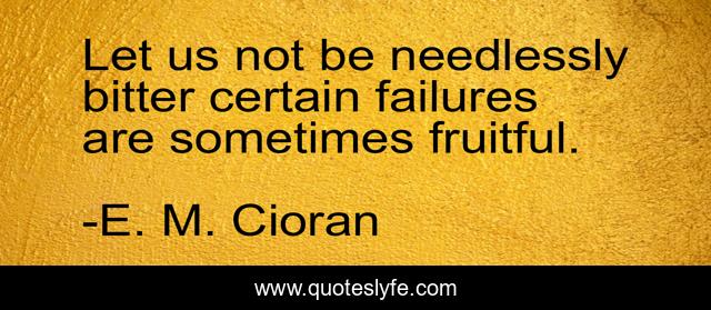 This page presents the quote "Let us not be needlessly bitter certain failures are sometimes fruitful.". Author of this quote is E. M. Cioran. This quote is about failures, mistakes,.