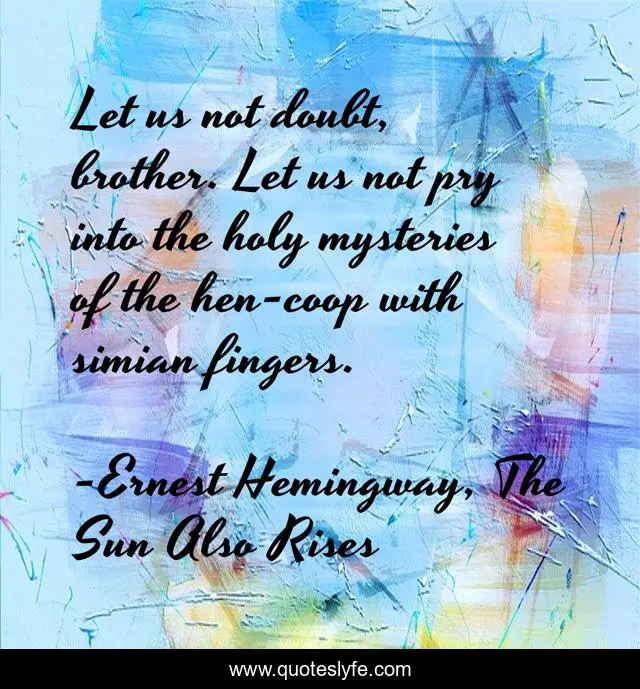 "Ernest Hemingway, The Sun Also Rises Quotes." Quoteslyfe.com, 2025. Tue. 09 Dec. 2025. <https://www.quoteslyfe.com/quote/Let-us-not-doubt-brother-Let-us-199618>.