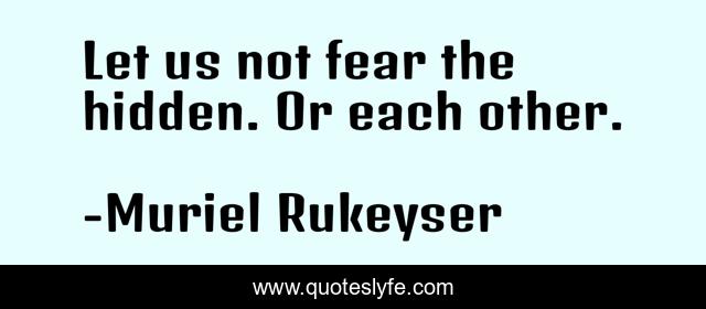 This page presents the quote "Let us not fear the hidden. Or each other.". Author of this quote is Muriel Rukeyser. .