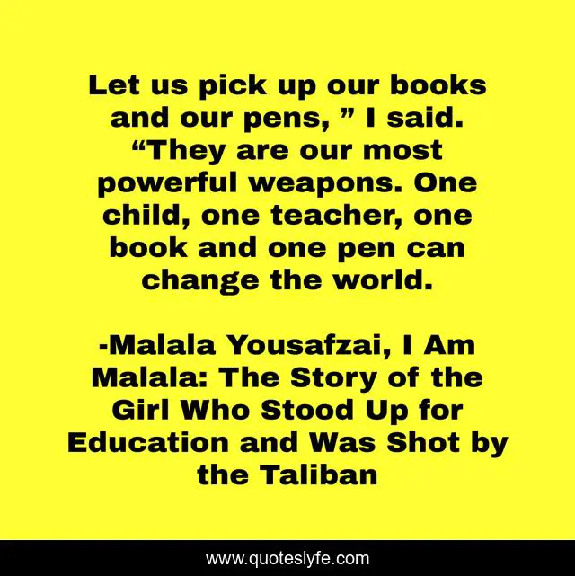 "Malala Yousafzai, I Am Malala: The Story of the Girl Who Stood Up for Education and Was Shot by the Taliban Quotes." Quoteslyfe.com, 2025. Mon. 08 Dec. 2025. <https://www.quoteslyfe.com/quote/Let-us-pick-up-our-books-and-4783>.