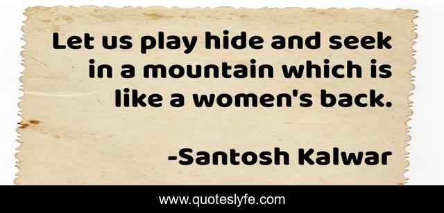 This page presents the quote "Let us play hide and seek in a mountain which is like a women's back.". Author of this quote is Santosh Kalwar. This quote is about mountain, play, love, affection, women,.