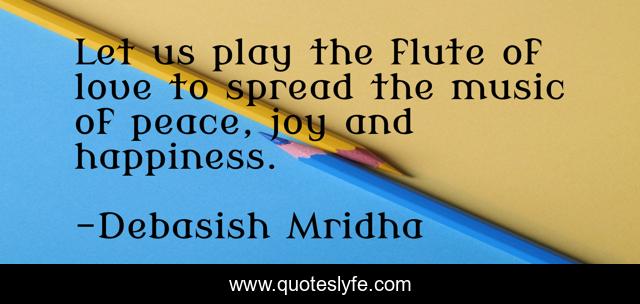 This page presents the quote "Let us play the flute of love to spread the music of peace, joy and happiness.". Author of this quote is Debasish Mridha. This quote is about life, love, knowledge, inspirational, intelligence, philosophy, wisdom, quotes, affection,.