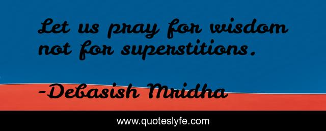 This page presents the quote "Let us pray for wisdom not for superstitions.". Author of this quote is Debasish Mridha. This quote is about let-us-pray, debasish, pray, mridha, philosophy, debasish-mridha, wisdom, superstitions,.