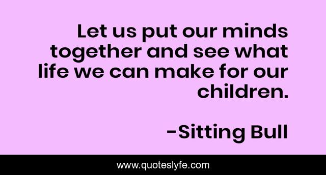 This page presents the quote "Let us put our minds together and see what life we can make for our children.". Author of this quote is Sitting Bull. This quote is about life, children, together,.