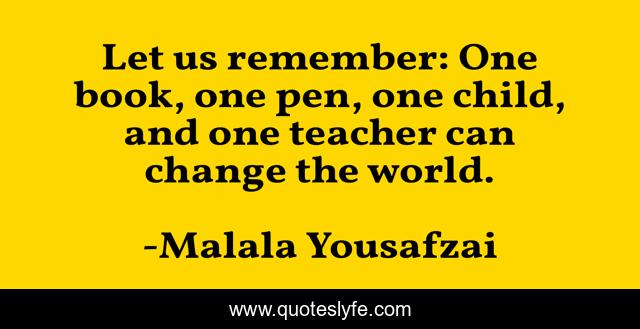 "Malala Yousafzai Quotes." Quoteslyfe.com, 2025. Fri. 05 Dec. 2025. <https://www.quoteslyfe.com/quote/Let-us-remember-One-book-one-pen-283860>.