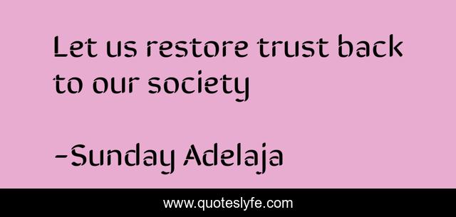 This page presents the quote "Let us restore trust back to our society". Author of this quote is Sunday Adelaja. This quote is about restore, trust, restoration, society,.