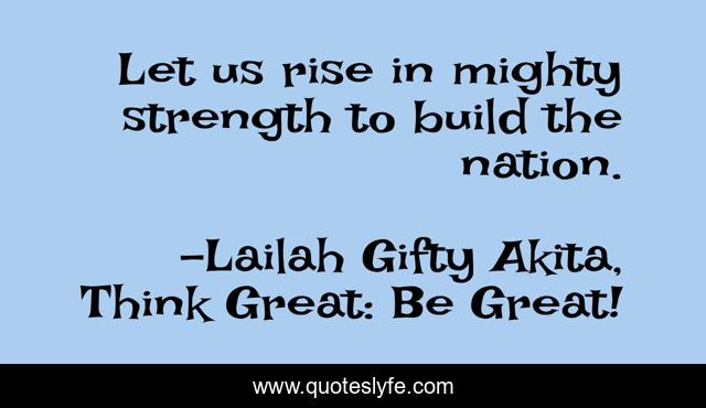 "Lailah Gifty Akita, Think Great: Be Great! Quotes." Quoteslyfe.com, 2025. Tue. 09 Dec. 2025. <https://www.quoteslyfe.com/quote/Let-us-rise-in-mighty-strength-to-104495>.