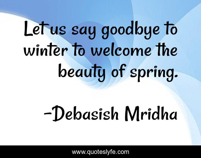 This page presents the quote "Let us say goodbye to winter to welcome the beauty of spring.". Author of this quote is Debasish Mridha. This quote is about life, love, knowledge, inspirational, intelligence, philosophy, wisdom, quotes, affection,.