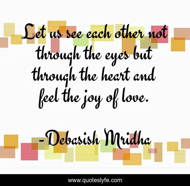 Let us see each other not through the eyes but through the heart and feel the joy of love.
