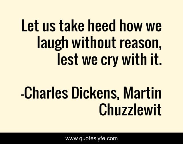 This page presents the quote "Let us take heed how we laugh without reason, lest we cry with it.". Author of this quote is Charles Dickens, Martin Chuzzlewit. .