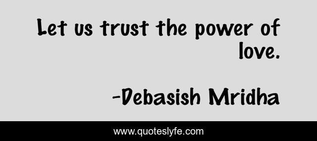 This page presents the quote "Let us trust the power of love.". Author of this quote is Debasish Mridha. This quote is about life, love, knowledge, inspirational, intelligence, philosophy, wisdom, quotes, affection,.