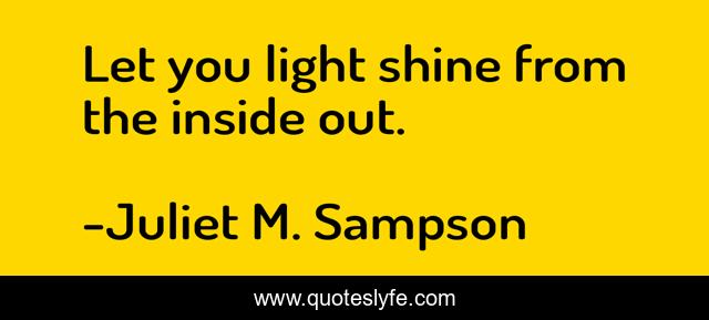 "Juliet M. Sampson Quotes." Quoteslyfe.com, 2025. Fri. 05 Dec. 2025. <https://www.quoteslyfe.com/quote/Let-you-light-shine-from-the-inside-187037>.