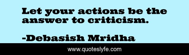 This page presents the quote "Let your actions be the answer to criticism.". Author of this quote is Debasish Mridha. This quote is about criticism, life-wisdom, philosophy, debasish-mridha, actions, quotes, answer-to-criticism, inspirational, enthusiasm,.