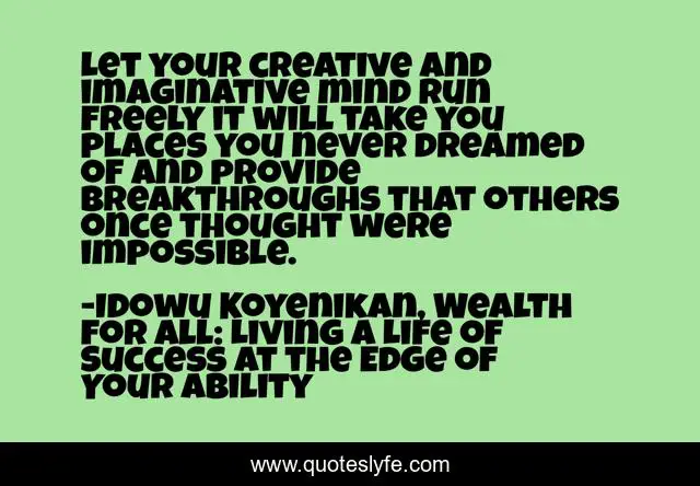 "Idowu Koyenikan, Wealth for All: Living a Life of Success at the Edge of Your Ability Quotes." Quoteslyfe.com, 2025. Mon. 08 Dec. 2025. <https://www.quoteslyfe.com/quote/Let-your-creative-and-imaginative-mind-run-33203>.