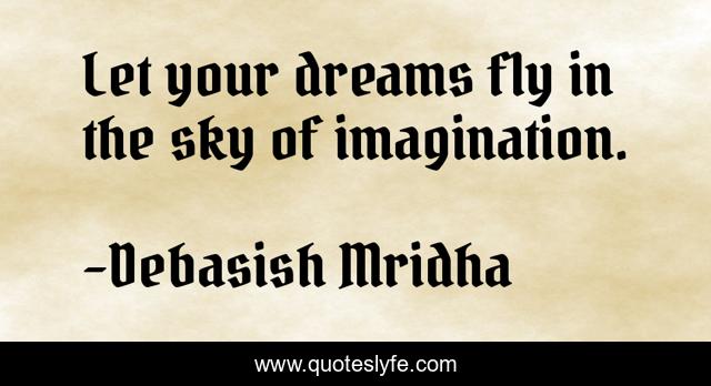 This page presents the quote "Let your dreams fly in the sky of imagination.". Author of this quote is Debasish Mridha. This quote is about imagination, philosophy, debasish-mridha, quotes, let-your-dreams-fly, inspirational, enthusiasm, debasish-mridha-m-d, dreams,.
