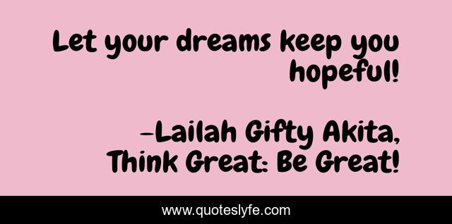 "Lailah Gifty Akita, Think Great: Be Great! Quotes." Quoteslyfe.com, 2025. Sat. 06 Dec. 2025. <https://www.quoteslyfe.com/quote/Let-your-dreams-keep-you-hopeful-34500>.