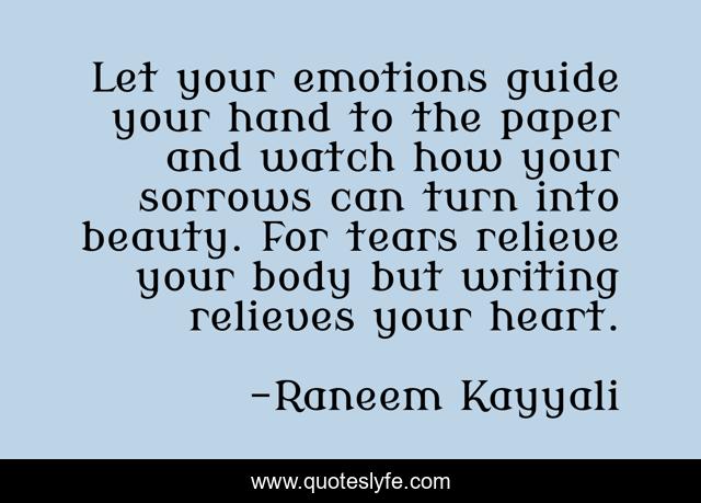 Let your emotions guide your hand to the paper and watch how your sorrows can turn into beauty. For tears relieve your body but writing relieves your heart.