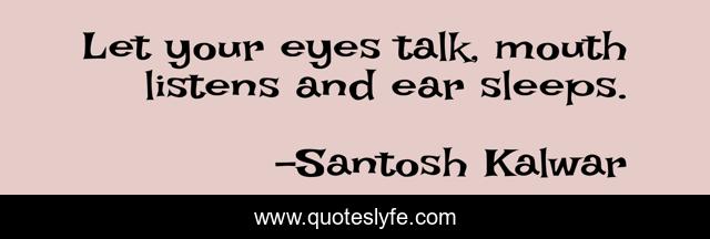 "Santosh Kalwar Quotes." Quoteslyfe.com, 2025. Tue. 09 Dec. 2025. <https://www.quoteslyfe.com/quote/Let-your-eyes-talk-mouth-listens-and-40715>.