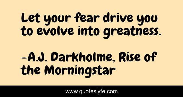 This page presents the quote "Let your fear drive you to evolve into greatness.". Author of this quote is A.J. Darkholme, Rise of the Morningstar. This quote is about evolution, greatness, self-awareness, self-doubt, fear,.