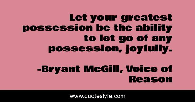 This page presents the quote "Let your greatest possession be the ability to let go of any possession, joyfully.". Author of this quote is Bryant McGill, Voice of Reason. This quote is about freedom, inspiring, happiness,.