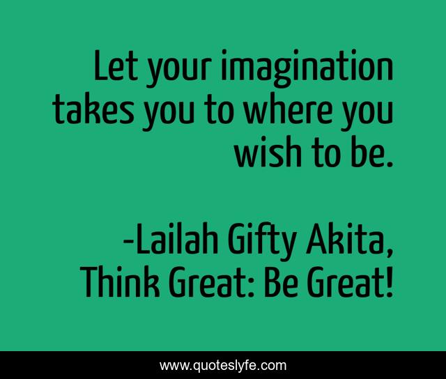 "Lailah Gifty Akita, Think Great: Be Great! Quotes." Quoteslyfe.com, 2025. Sat. 06 Dec. 2025. <https://www.quoteslyfe.com/quote/Let-your-imagination-takes-you-to-where-87510>.