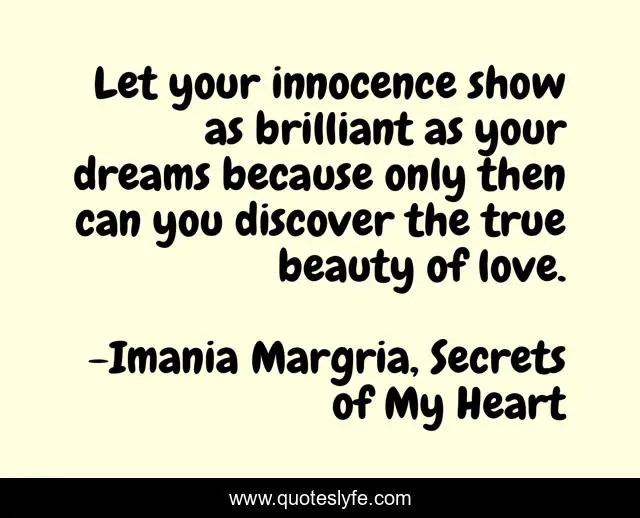 "Imania Margria, Secrets of My Heart Quotes." Quoteslyfe.com, 2025. Sat. 06 Dec. 2025. <https://www.quoteslyfe.com/quote/Let-your-innocence-show-as-brilliant-as-47755>.
