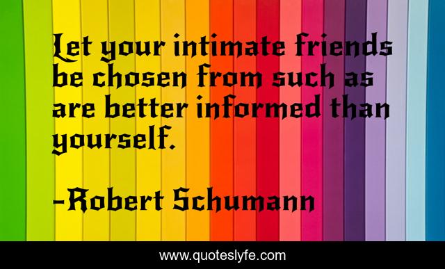 This page presents the quote "Let your intimate friends be chosen from such as are better informed than yourself.". Author of this quote is Robert Schumann. This quote is about friends, informed,.