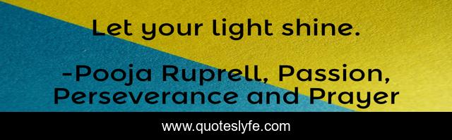 This page presents the quote "Let your light shine.". Author of this quote is Pooja Ruprell, Passion, Perseverance and Prayer. This quote is about perseverance, motivation, passion, prayer, happiness, inspiration,.