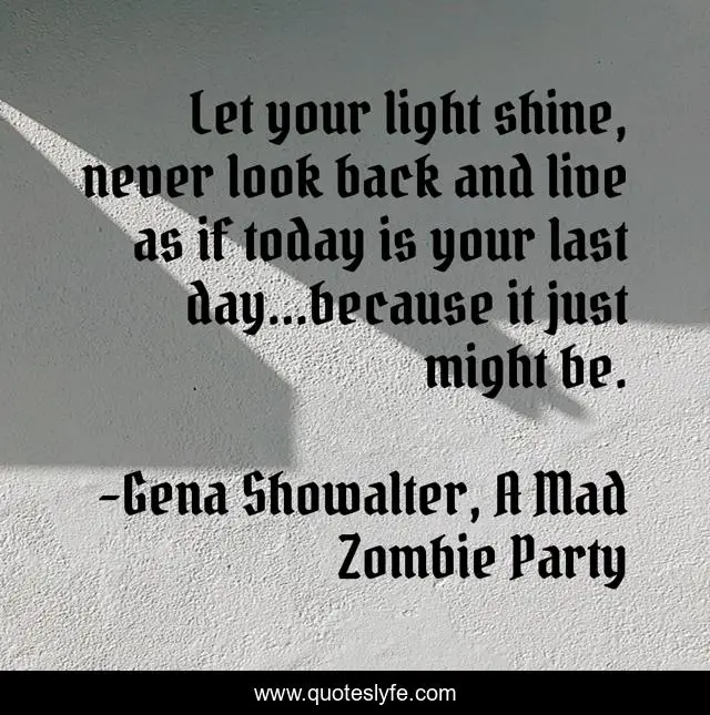 "Gena Showalter, A Mad Zombie Party Quotes." Quoteslyfe.com, 2025. Fri. 05 Dec. 2025. <https://www.quoteslyfe.com/quote/Let-your-light-shine-never-look-back-118603>.