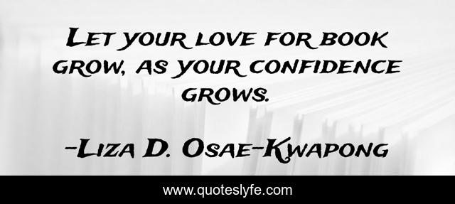 This page presents the quote "Let your love for book grow, as your confidence grows.". Author of this quote is Liza D. Osae-Kwapong. This quote is about enthusiasm, inspirational,.