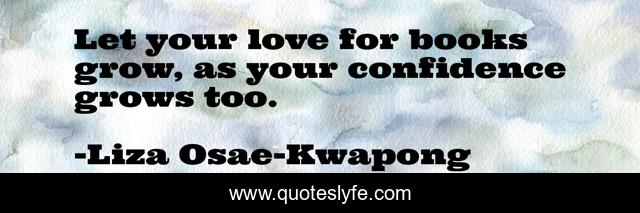 This page presents the quote "Let your love for books grow, as your confidence grows too.". Author of this quote is Liza Osae-Kwapong. This quote is about enthusiasm, books, inspirational,.