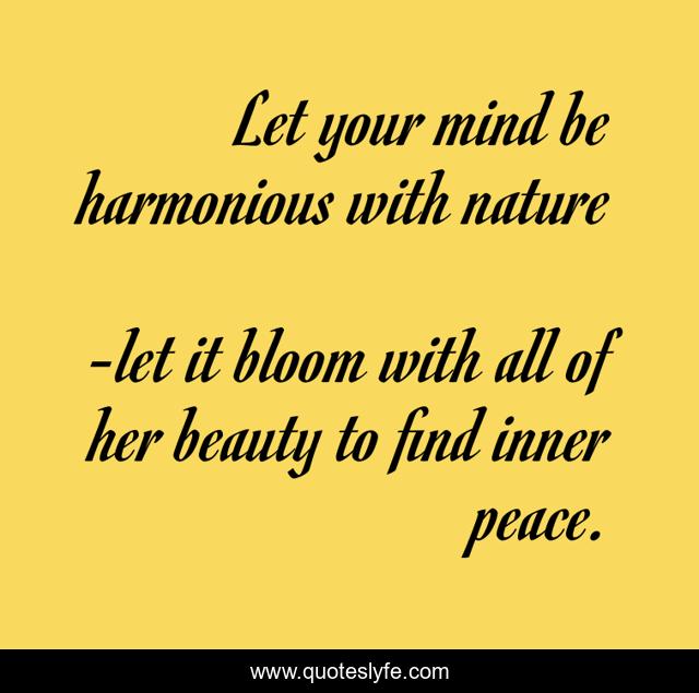 This page presents the quote "Let your mind be harmonious with nature". Author of this quote is let it bloom with all of her beauty to find inner peace.. .