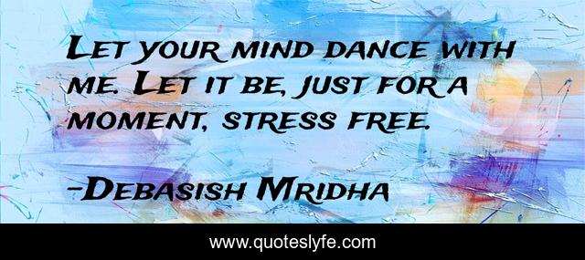 This page presents the quote "Let your mind dance with me. Let it be, just for a moment, stress free.". Author of this quote is Debasish Mridha. This quote is about stress, let-your-mind-dance, life-wisdom, philosophy, debasish-mridha, quotes, inspirational, enthusiasm, live-for-the-moment,.