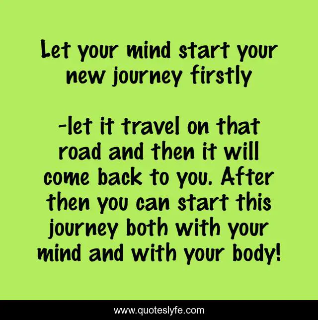 "let it travel on that road and then it will come back to you. After then you can start this journey both with your mind and with your body! Quotes." Quoteslyfe.com, 2025. Mon. 08 Dec. 2025. <https://www.quoteslyfe.com/quote/Let-your-mind-start-your-new-journey-87037>.