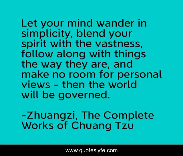 "Zhuangzi, The Complete Works of Chuang Tzu Quotes." Quoteslyfe.com, 2025. Mon. 08 Dec. 2025. <https://www.quoteslyfe.com/quote/Let-your-mind-wander-in-simplicity-blend-241360>.