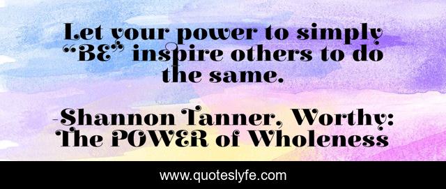 This page presents the quote "Let your power to simply “BE” inspire others to do the same.". Author of this quote is Shannon Tanner, Worthy: The POWER of Wholeness. This quote is about be, inspire,.