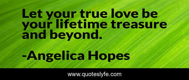 This page presents the quote "Let your true love be your lifetime treasure and beyond.". Author of this quote is Angelica Hopes. This quote is about true-love, life, infinity, whispers-of-a-soul, time, landscapes-of-a-heart,.