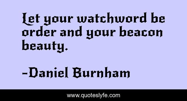This page presents the quote "Let your watchword be order and your beacon beauty.". Author of this quote is Daniel Burnham. This quote is about beacon, order, your,.