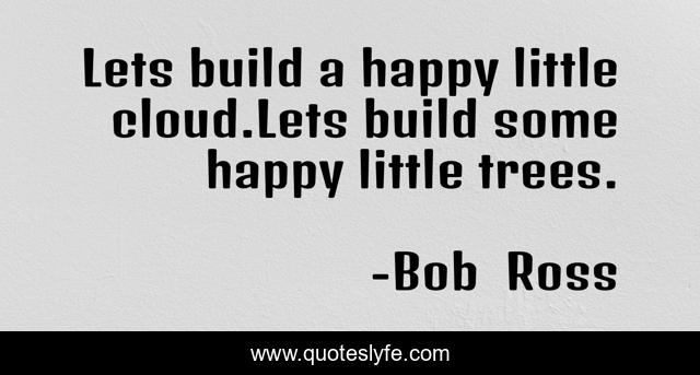 This page presents the quote "Lets build a happy little cloud.Lets build some happy little trees.". Author of this quote is Bob Ross. This quote is about anthropomorphism, positive-thinking, painting, inspirational, enthusiasm,.