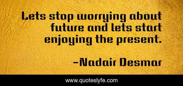 "Nadair Desmar Quotes." Quoteslyfe.com, 2025. Fri. 05 Dec. 2025. <https://www.quoteslyfe.com/quote/Lets-stop-worrying-about-future-and-lets-218162>.