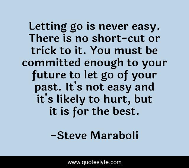 This page presents the quote "Letting go is never easy. There is no short-cut or trick to it. You must be committed enough to your future to let go of your past. It's not easy and it's likely to hurt, but it is for the best.". Author of this quote is Steve Maraboli. This quote is about life, letting-go, let-go, inspirational, enthusiasm, happiness,.