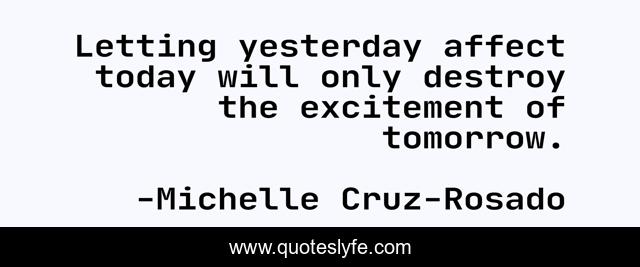 "Michelle Cruz-Rosado Quotes." Quoteslyfe.com, 2025. Fri. 05 Dec. 2025. <https://www.quoteslyfe.com/quote/Letting-yesterday-affect-today-will-only-destroy-223647>.