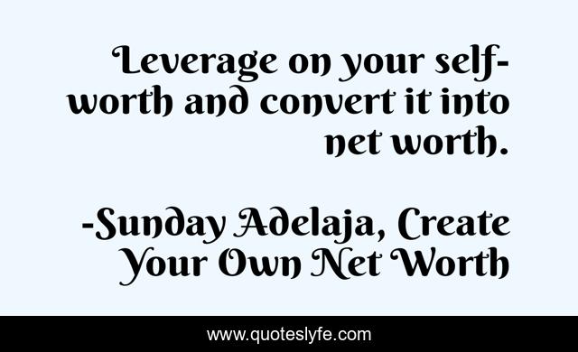This page presents the quote "Leverage on your self-worth and convert it into net worth.". Author of this quote is Sunday Adelaja, Create Your Own Net Worth. This quote is about conversion, self-image, net-worth, god, nature, life, self-worth, worth, man,.