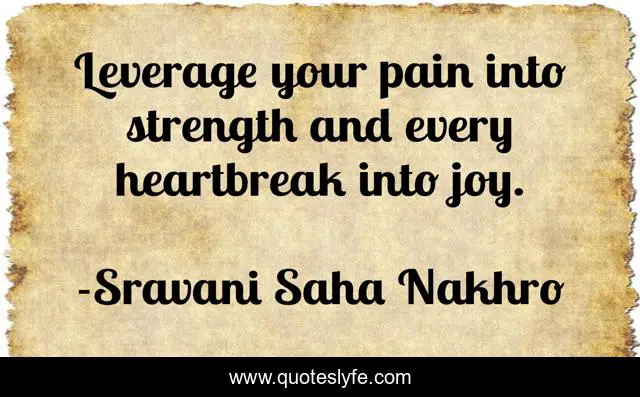 This page presents the quote "Leverage your pain into strength and every heartbreak into joy.". Author of this quote is Sravani Saha Nakhro. .