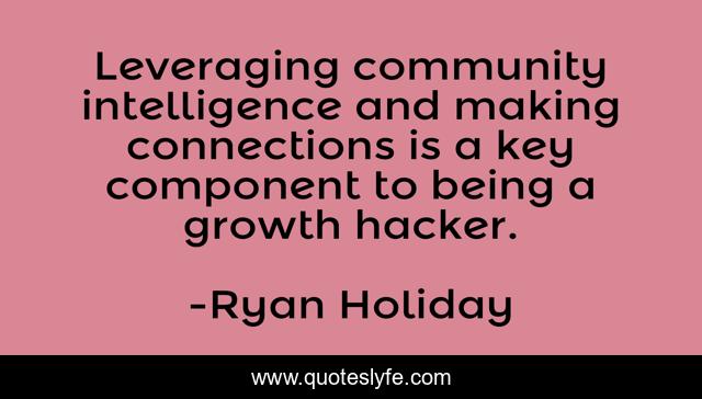 This page presents the quote "Leveraging community intelligence and making connections is a key component to being a growth hacker.". Author of this quote is Ryan Holiday. This quote is about growth, community,.