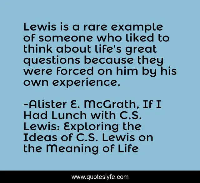 "Alister E. McGrath, If I Had Lunch with C.S. Lewis: Exploring the Ideas of C.S. Lewis on the Meaning of Life Quotes." Quoteslyfe.com, 2025. Sun. 07 Dec. 2025. <https://www.quoteslyfe.com/quote/Lewis-is-a-rare-example-of-someone-143695>.