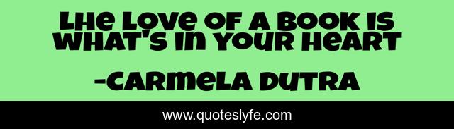 This page presents the quote "Lhe love of a book is what's in your heart". Author of this quote is Carmela Dutra. This quote is about heart, book, love, reading, affection,.