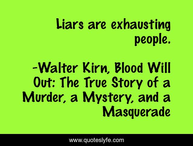 "Walter Kirn, Blood Will Out: The True Story of a Murder, a Mystery, and a Masquerade Quotes." Quoteslyfe.com, 2025. Mon. 08 Dec. 2025. <https://www.quoteslyfe.com/quote/Liars-are-exhausting-people-255598>.