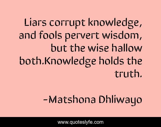 "Matshona Dhliwayo Quotes." Quoteslyfe.com, 2025. Fri. 05 Dec. 2025. <https://www.quoteslyfe.com/quote/Liars-corrupt-knowledge-and-fools-pervert-wisdom-98414>.