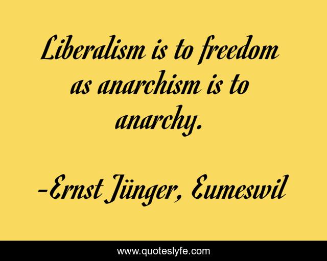 This page presents the quote "Liberalism is to freedom as anarchism is to anarchy.". Author of this quote is Ernst Jünger, Eumeswil. This quote is about freedom, ernst-jünger, anarchy, liberalism, anarch,.